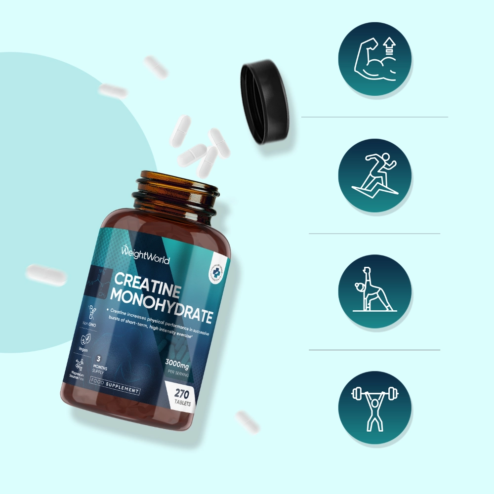 - Contains 270 Creatine Monohydrate Tablets per pack for a complete 3-month supply - no worries of reordering every week