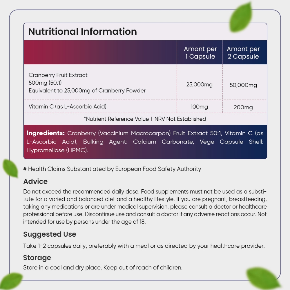 25,000mg 180 Capsules | Freeze-Dried Cranberries for Optimal Well-Being