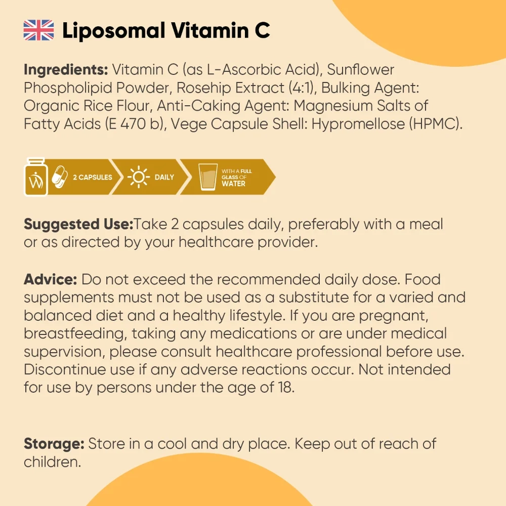 - Just 2 easy-to-take Liposomal Vitamin C Capsules a day, offering you three months' supply without the hassle of reordering every month