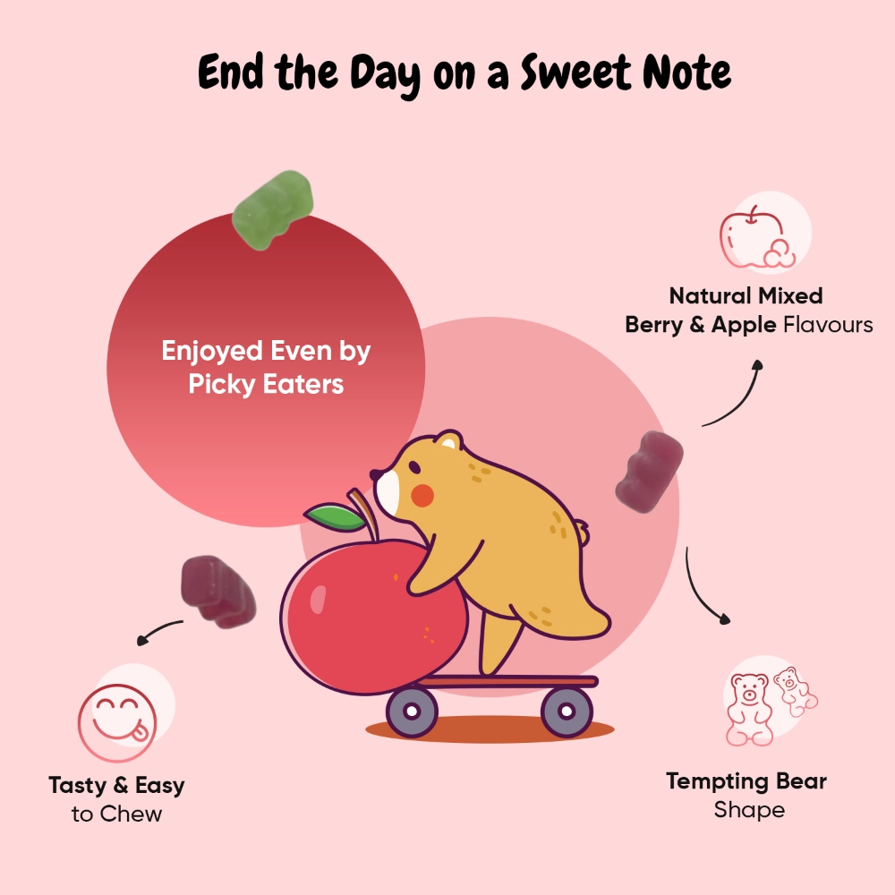 - 2 flavours in 1 bottle - Mixed berry & apple-flavoured gummies