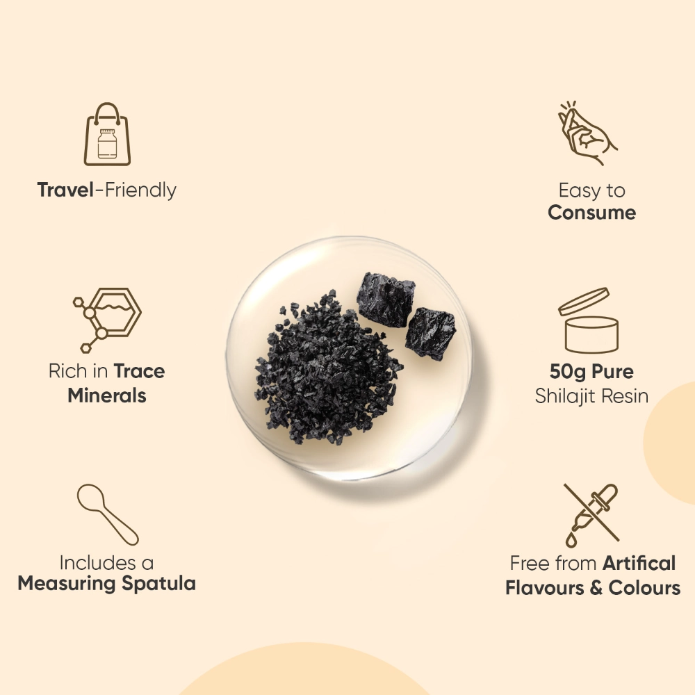 Take 800mg of shilajit resin daily, with the help of the spatula provided. Dissolve it in lukewarm water/milk/green tea, or as directed by your healthcare professional.